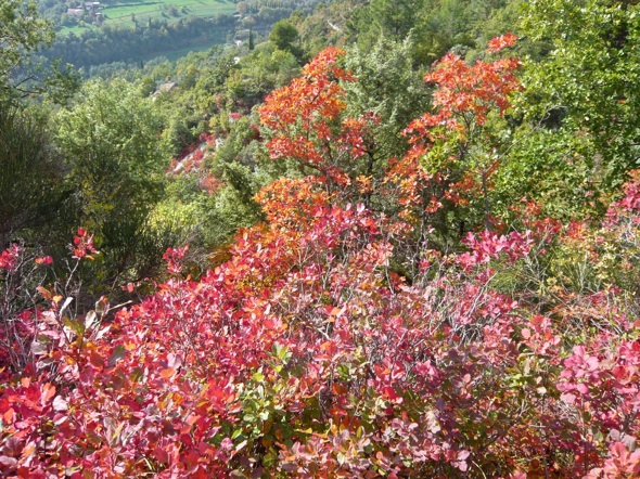 Le sumac fustet Cotinus coggygria (Anacardiacées), ou arbre à perruques, souvent cultivé, vit aussi à l’état sauvage. Il préfère les terrains secs et calcaires des Alpes du Sud.
