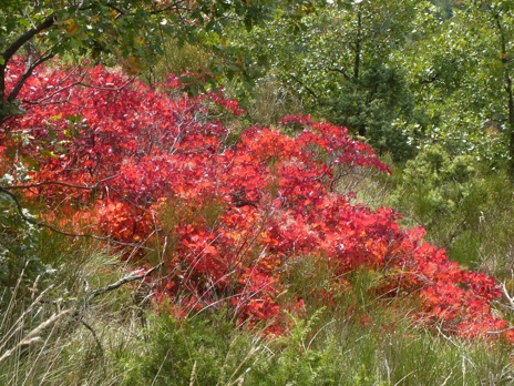 À l’automne, sa couleur rouge vif se voit de loin et tranche avec la teinte verte des autres plantes.