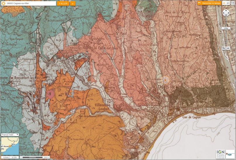 La Cagne reçoit un affluent, le Malvan, dont la source se trouve aussi dans les plateaux calcaires jurassiques (« baous ») qui s’élèvent en arrière des collines tertiaires (colorés en rose, ou orangé, ou vert).